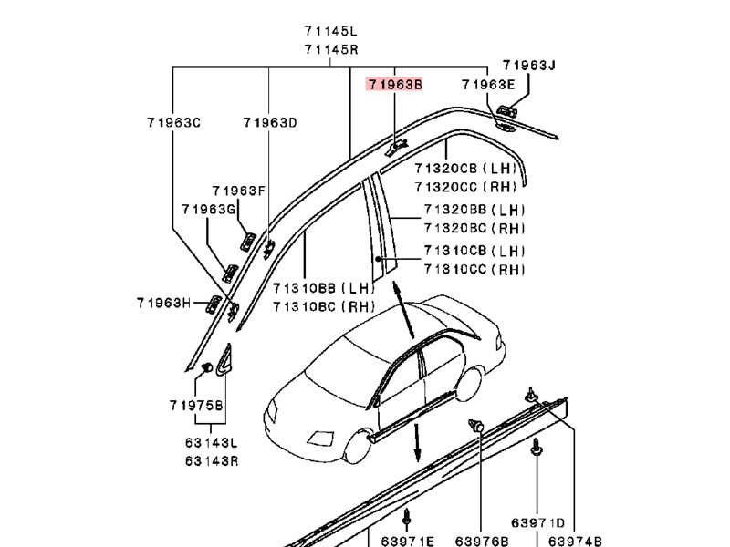 Original Mitsubishi Clip zur Befestigung der Dachzierleiste vom Evo 7-9.