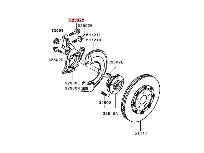 Original Mitsubishi Exzenterschraube zur Befestigung / Einstellung des Stoßdämpfers VA Achsschenkels vom Evo 7-10.
