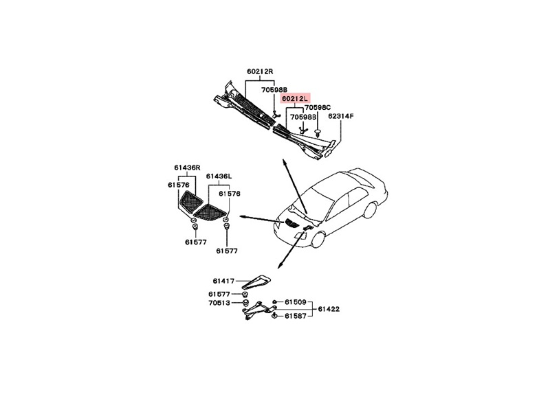 Original Mitsubishi Lufteinlassgitter links für den Wischerkasten des Evo 7-9 (LHD).