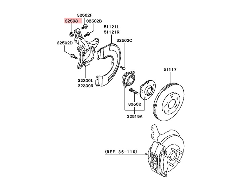 Original Mitsubishi Mutter zur Befestigung des Stoßdämpfers am Achsschenkel vom Evo 7-9.