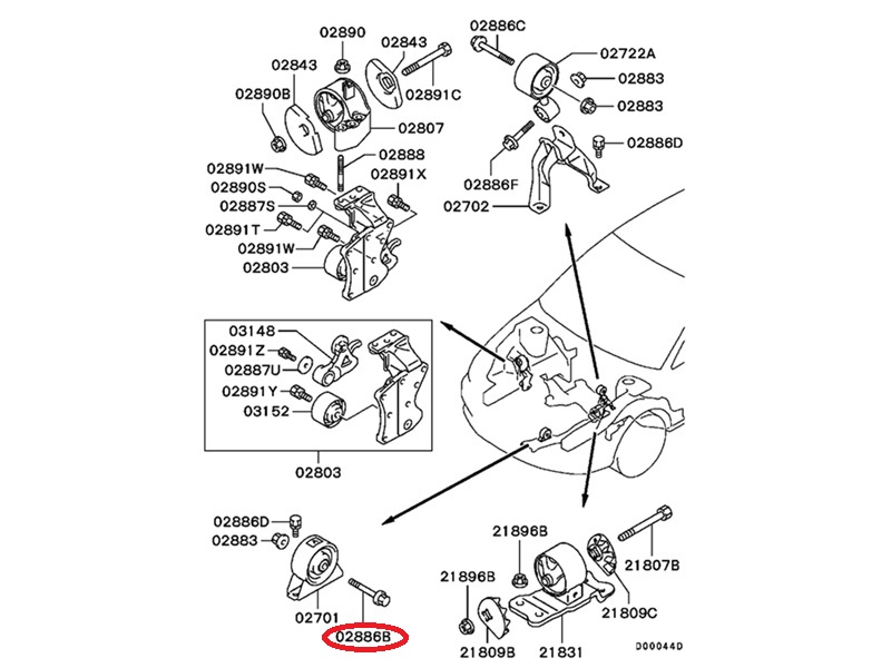 Original Mitsubishi Schraube Motorhalter vorne – Evo 7-9.